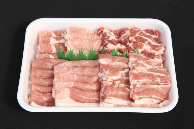 【内容】・豚ロース焼肉用 210g・豚モモ焼肉用 210g・豚バラ焼肉用 210g ・豚肩ロース焼肉用 210g 計840g